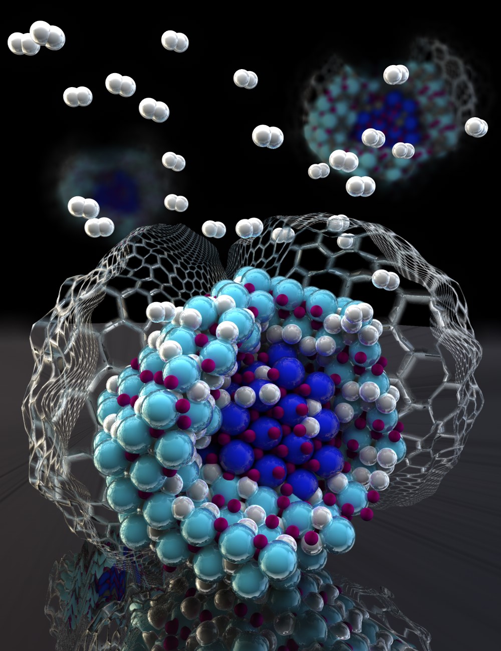 The new material that emerged from Poonyayant’s idea showed some unusual and unexpected properties. First, the amount of lithium nitride in the carbon nanoparticle host was quite high for a nanoconfined system, about 40 percent. Second, the nanoconfined lithium nitride absorbed and released hydrogen more rapidly than the bulk material. Furthermore, once the lithium nitride had been hydrogenated, it also released hydrogen in only one step and much faster than the bulk system that took two steps.